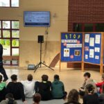 W dniu 2 października gościliśmy w szkole młodszego aspiranta Łukasza Gostomczyka, który przeprowadził rozmowę z uczniami naszej szkoły. Pan Policjant uświadamiał uczniom, jak ważne jest przeciwdziałanie agresji, wspieranie się nawzajem i budowanie pozytywnych relacji.